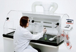 高生理活性粉體安全封存稱量專用的小型桌上型通風柜??紤]了節能、簡易構造以及安全清潔的設計。