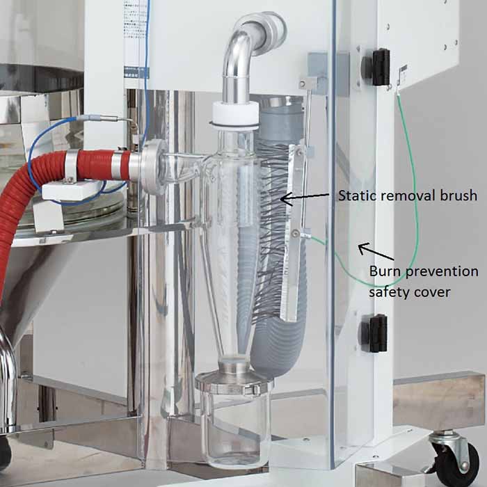 干燥室材質(zhì) | 干燥室、旋風(fēng)部、生成物容器:超硬玻璃制,其它配管材料為不銹鋼及硅膠軟管 |